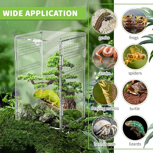 【Package Include】Our jumping spider enclosure accessories measure 4.7"x4.7"x7.9", suitable size for kinds of small reptile animals. The reptile habitat is designed with vents to provide fresh air for the reptile. There is a protective film on the outside of the product, please remember to tear it when you receive it