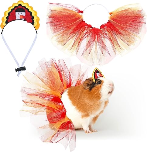 Complete Costume Set: our package includes two guinea pig costumes sets featuring a headband, headscarf, and tutu skirt; This ensures your pet is fully adorned from top to bottom in an adorable, coordinated turkey theme; It's the complete assembly your little companion needs to feel fabulously festive and fashionable