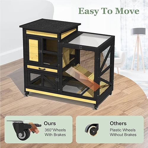 Movable for Indoors & Outdoors: The 47.3" rabbit hutch (also a versatile rabbit cage) has 4 smooth wheels (2 lockable) for easy indoor or outdoor movement. Move it between rooms, patios, or gardens effortlessly, ensuring safety on any surface for both rabbit hutch outdoor and bunny cage indoor use.
