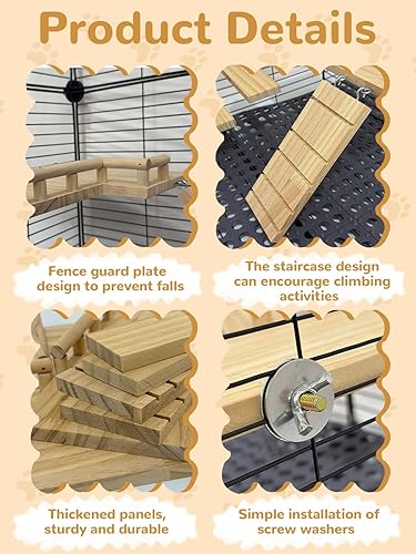Premium Natural Wood Construction: This wooden platform for rat cage crafted from high-quality, untreated natural pine wood. Features a smooth, waterproof surface for easy cleaning and offers a safe material for pets to chew