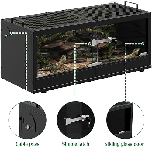 【All-Metal Secure Enclosure with Locking Glass Doors】Constructed with heavy-duty all-metal framework and features smooth sliding glass doors with a secure lockable clasp, this Reptile Cage ensures maximum security and prevents escapes—ideal for housing even the most aggressive pets with complete confidence.