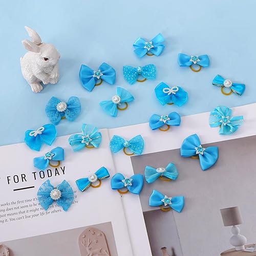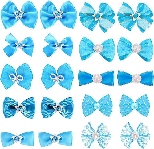 Pet Puppy Hair Bow Set: this pink bows for dogs includes 20 pieces/10 pairs of different styles of pink hair bows, with faux rhinestone dog hair bows, faux pearl mesh hair bows, etc., very cute, suitable for small, medium and large dogs and other furry pets