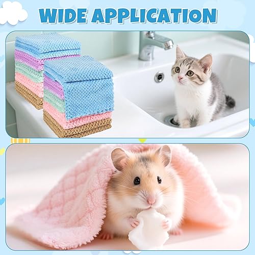 Coral Fleece Material: The absorbent small animal bedding blankets are made of coral velvet, delicate texture, soft touch, not easy to lose hair, no pilling, no color loss, beautiful appearance, rich colors, and has a good water absorbency