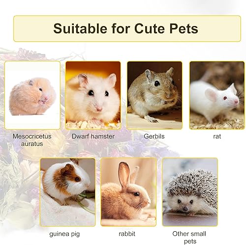 Natural and safe hamster bedding: Carefully selected by pet experts, small animal bedding comes from the natural world: rabbit tail, Turniflora leaf, bamboo leaf, mint, thousand day purple, red Qiaomei, chrysanthemum, forget-me-not. All hand-picked, naturally dried, no added ingredients