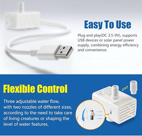 【Widely Applicable & Worry-free Choice】: The voltage of the Novique USB water pump is 3.5-9V, supports USB device or solar panel power supply, energy-saving and convenient. IP68 waterproof design, suitable for aquariums, fountains, small ponds, garden decorations, and other scenarios, adding more fun to life, and also a a good choice for gifts. We provide 12 months warranty and 24-hour professional after-sales service. If you have any questions about the product, please contact us at any time.