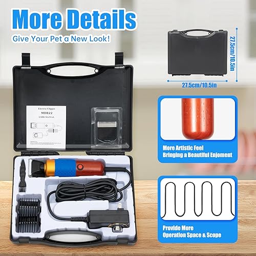 TAKE THE COMPLETE KIT ANYWHERE: Two dual-length guide combs (⅛ in, ¼ in, ⅜ in, ½ in), a spare blade, a cleaning brush, and a rugged carrying case keep everything organized for travel; beginners should follow the included instructions or consult a professional to avoid injuring animals.