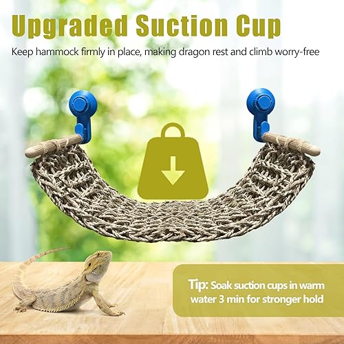 Premium Material: Crafted from natural, hand-woven seagrass, bearded dragon window perch delivers both comfort and durability. Soft mat of reptile hammock lets your reptiles climb and rest worry-free, offering an enriching environment that mimics their natural habitat