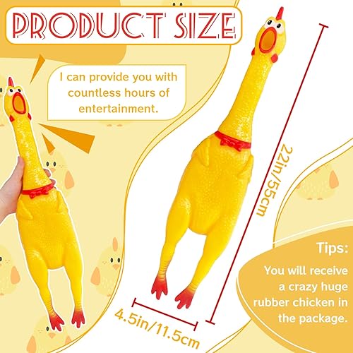 【Package Include】:You will receive a 22 inch/55 cm crazy huge rubber chicken in the package.This practical joke rubber chicken is a classic gag that never goes out of style.Its loud voice will leave you with many unforgettable memories.