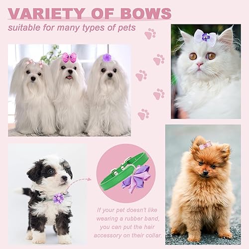 Fashionable and Cute: These bows are novel in style, mainly pink and purple, bright and beautiful, cute and fashionable, and can be matched well with various kinds of clothes of your pets, giving them a fashionable appearance