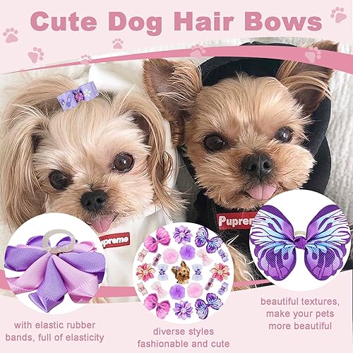 What You will Get: The package comes with 22 pieces of dog hair bows in diverse styles, including classic flower styles, flower pearl styles, butterfly styles, classic bow styles, double bow rhinestones styles, enough quantities to allow you to dress up your pets