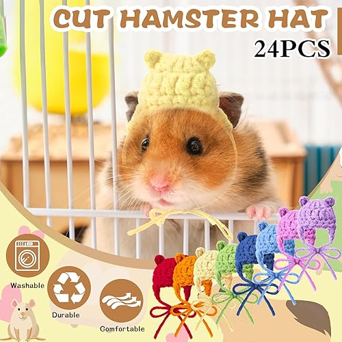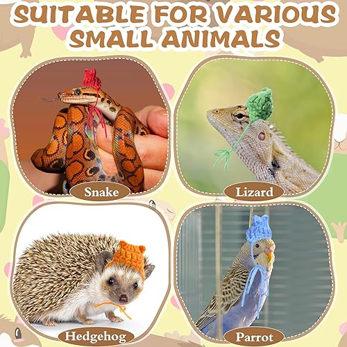 24 Pcs Hamster Hats: you get 24 mini hand knitted hats in different colors, offering a broad palette for you to choose from to suit your daily preferences. These adorable hamster hats are not only practical, but they also add a vibrant touch to your pet's look. They are nice for lizards, snakes, ball pythons, hamsters, small iguanas, lizards, hedgehogs, and other small animals