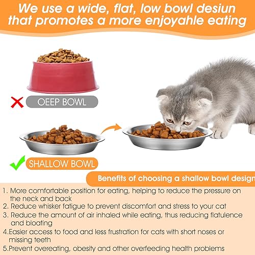Stainless Steel Pet Bowl: Kitten bowls are made of high-quality stainless steel, making them more durable than odorous plastic bowls and fragile ceramic bowls. Our stainless steel cat bowl is durable, reusable, and durable, making them a great choice for your furry friend, whether indoors or outdoors.