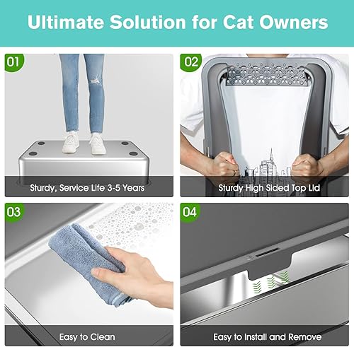 【Non Sticky, Odor Free Steel Cat Litter Box】: Unlike plastic alternatives, the stainless steel material does not absorb stains or odors.Its smooth, non-sticky bottom makes it very easy to clean, and these make it easy for you to maintain a fresh and clean environment for your beloved cat kitty. This feature alone makes it a standout choice for cat owner who prioritize cleanliness like you.