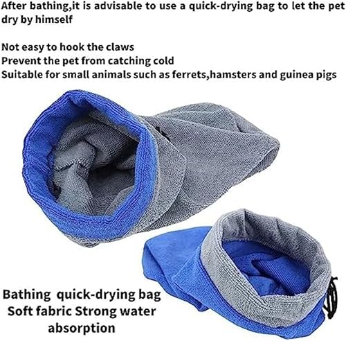 Fast Drying: Premium Microfibre Material. Lightweight, Super Absorbent, Fast Dry, these ferret towel bags have applied high absorbent fabric material, extremely durable, comfortable, can quickly absorb the moisture on the small pet body, prevent the pet cold.