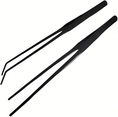 DESIGN LENGTH: 10-3/5",The long tongs are of the right length to protect your hands from injury. Botht the straight and curved tweezer has serrated tips, Very powerful grip, To help grip stuff securely without ever slipping off. These tweezers are great for feeding bugs that you don't want to get too close to