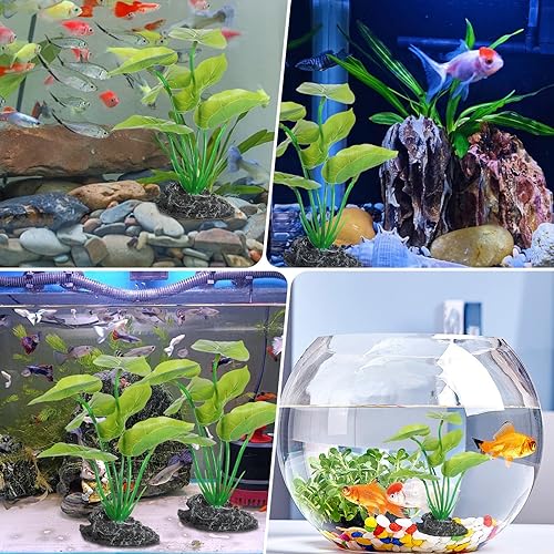 [Realistic Design] Our fish tank decorations feature a vivid, lifelike design, adding a touch of realism to your aquarium. They mimic the natural movement of live aquatic plant leaves and require no special care. The floating wood base ensures stability in water.