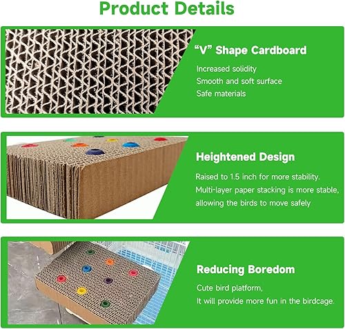 Exercise and Play: The cardboard bird stand can exercise the bird's grip. The multi-layer cardboard is can be used as a bird's chewing toy, which is safe and cute