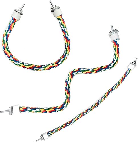 COMFORTABLE & FIRM: The bird's rope perch is made of durable multi-color cotton thread, wound on a steel wire to provide firm support, and provide a safe and comfortable habitat for birds to stand and bungee