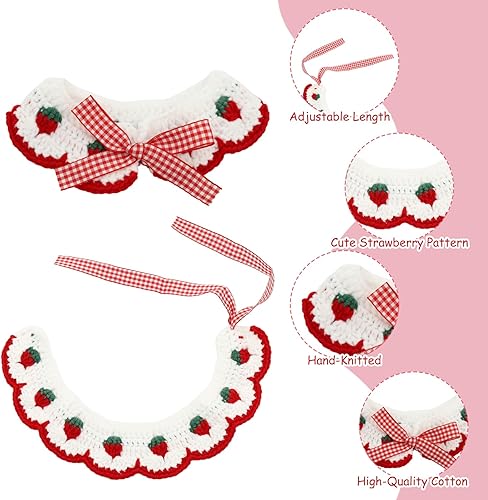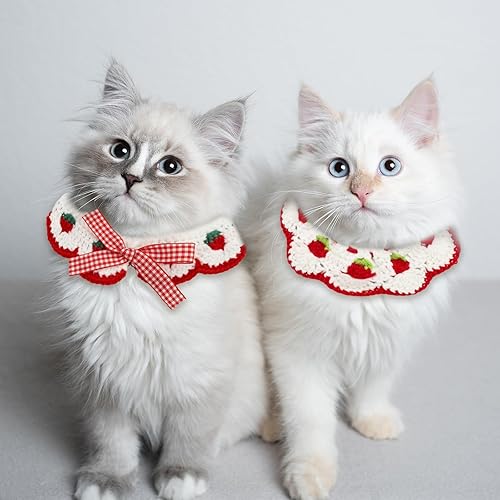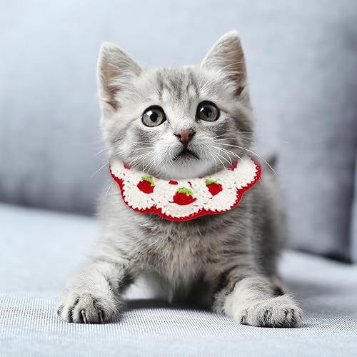 Charming Set of 2 Hand-Knitted Strawberry Kitten Collars: Each set includes two adorable, handcrafted collars, perfect for adding a touch of whimsy to your pet's look. With its strawberry motif, this cute collar delights both visually and functionally for playful female pets. These cute cat collars are designed to make your furry friend stand out in setting.