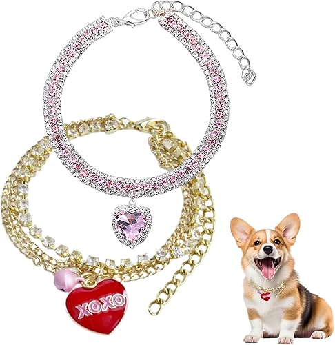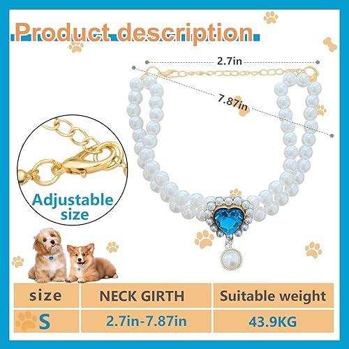 Exquisite Set: Each package contains 2 small pearl cat collars, with two heart-shaped patterns in green and blue to choose from. It can meet various decoration needs for your pet and is also an excellent gift for small dogs and cats.