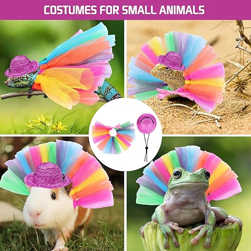 Unique Pet Costume: This bearded dragon costume set includes a stylish rainbow tutu and a crochet dragon hat, perfect for dressing up your pets, small pets like lizards, geckos, rats, guinea pigs, and more.