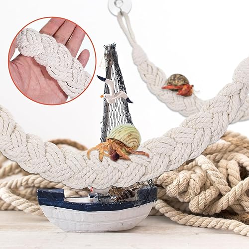 【Package Contents】You will receive 2pcs hermit crab climbing ropes and 4 transparent suction cup hooks. The ropes are hand-woven for compactness and safety, ensuring your pets enjoy a stimulating and secure climbing experience