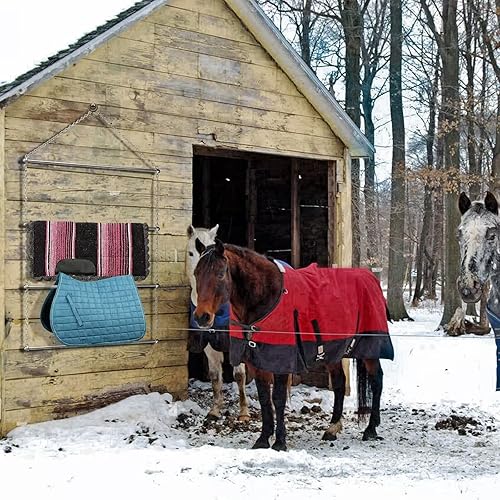 【Easy to Store】The horse blanket with four hanging rails,the flexible chain can be folded when not in use.