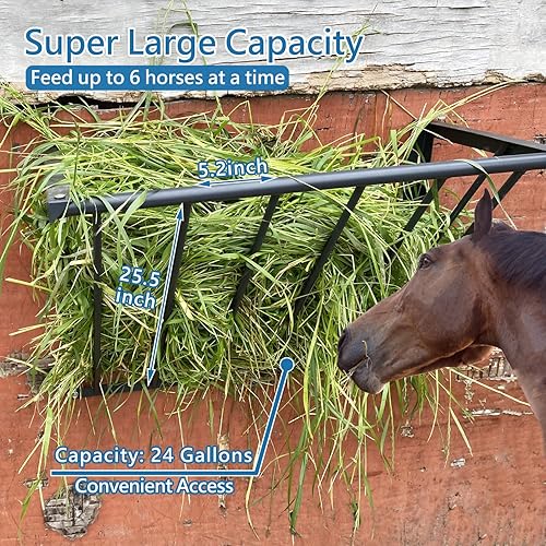 Long Hay Feeder: Are you still looking for a quality feeder for your beloved livestocks? BUYYAH now provides a large enough 24 gallon capacity sheep hay feeder for your all-day feeding. Item Size (L x W x H): 31.5 x 15.5 x 22.5 in. Package of 2.