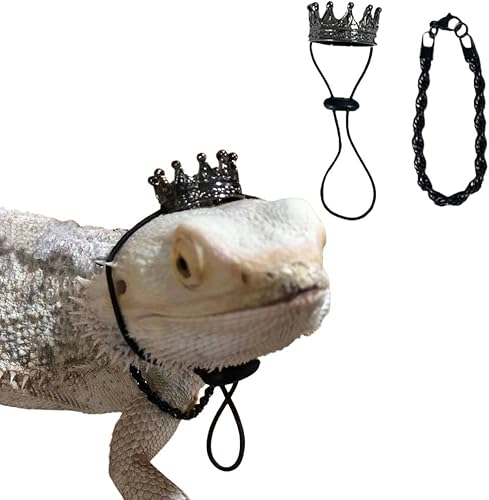 BEST PRESENT : This aluminum alloy chain necklace and crown are suitable for pets as weekend parties, holiday and vacations, parades, photo props, show and performance. The lizard crown and necklace set are designed to be a ideal present for your pet lizard, bearded dragon on holidays or as a excellent present to lizard-lover friends. Have a great time with your little "king/queen of the world". Package includes:1* Lizard Gold Alloy Crown & Necklace Set (NOTE: Not recommended for long wear.)