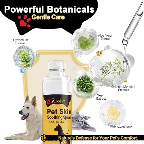 [Plant-Derived Ingredients for Pets]: Made with gentle botanical extracts, this spray supports skin moisture without added irritants, suitable for dogs and cats of various sizes
