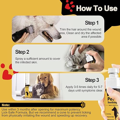[Quick Comfort for Itchy Areas]: This pet spray helps calm itchiness and minor skin irritations from dryness or environmental triggers, promoting a sense of ease for your pet right away
