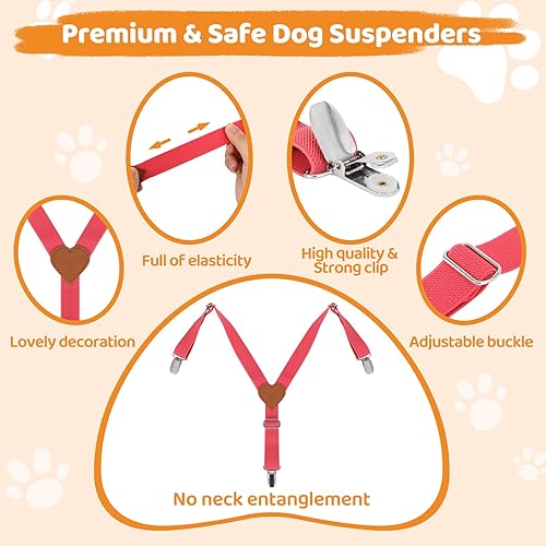 Premium Quality - Dog suspenders are made of quality polyester with metal buckle. They have good elasticity and stretchability, you pet will feel comfortable when wearing them.These suspenders can also be used with dog overalls for added convenience.