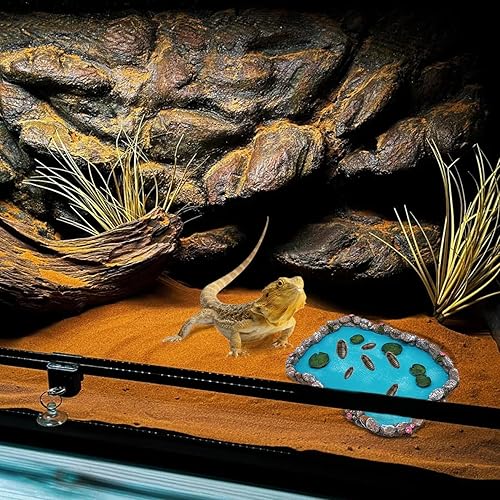 【Pond Appearance】The reptile water dish is designed as a pond, which looks very delicate and beautiful. It can also be used as a fine aquarium decoration, which matches the living space of the reptile.