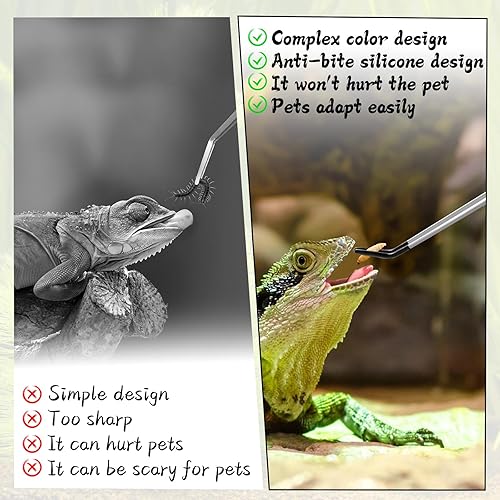 - Both curved and straight reptile feeding tongs feature firmly attached rubber tips to protect your pet's mouth from injuries while feeding. They are perfect for bearded dragon and other reptile tanks, and the rubber tips also make gripping easier.