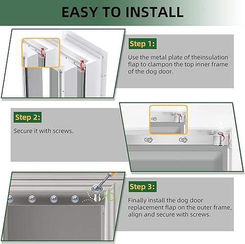 Easy Installation: MIAOTONG Pet door replacement flap installation process is simple and quick, no complicated tools are needed, just a common screwdriver with our included screws can complete the installation