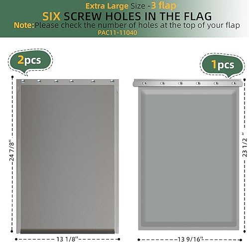 Fits Large Sized Pets: MIAOTONG Dog door replacement flap measures 10 1/8 inches (W) x 16 7/8 inches (L), the insulation pack measures 10 1/16 inches (W) x 16 7/16 inches (L), and there are 5 holes at the top of the flap. Package includes 2 flaps and a heat pack, and screws