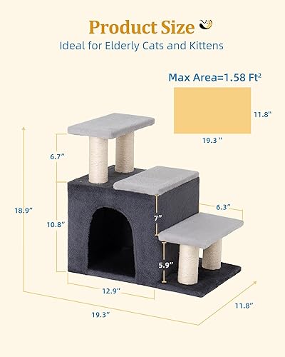 Pet Stairs with Cat Condo: This cat tree tower has 3 ladders, a 12.9''x11.8'' large cat cave and scratching posts, which enrich the diversity of cat activities and utilize the space vertically