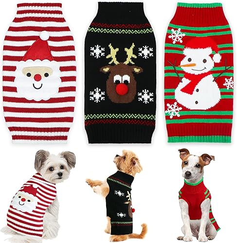 Dog Holiday Sweater: This set of dog sweaters includes 1 turkey dog thanksgiving sweater, 1 santa dog Christmas sweater and 1 snowman Christmas dog sweater. These 3 pack holiday dog sweaters will keep your dog warm in this winter.