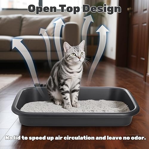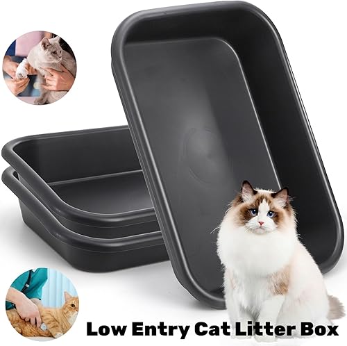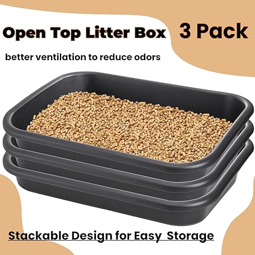 Large Space: Included 3 packs of low entry cat litter boxes in the package. The size of the large litter box is 23" L x 16.5" W x 4.3" H, providing ample space for your furry friend to do their business in comfort. Note: please check the size before buying.
