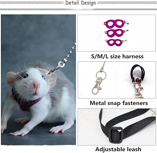 3 SIZE PACKS/SET: Our rat harness and leash set comes with small, medium and Large 3 size leather harness, great for your lovely small animal pets during its growing.It comes with a leash of about 1.6m / 63inch long, the length of the rope can be adjusted freely, allowing you to keep an ideal distance from your pet.