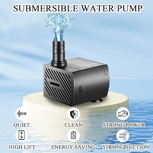 【Easy to Use】The components are easy to install, allowing you to effortlessly connect the pump to your fountain or pond. Easy to separate and clean design ensures longevity of the Submersible Pump.