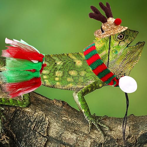 Package: You will get 3 pcs Lizard christmas outfit set, includes a hat, a scarf, and a colorful adjustable skirt, may your pets have a merry Christmas too.