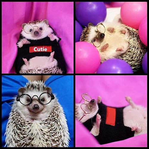 Package includes: 3 pcs glasses for hedgehog including:1x 2.16 inch black round rim eyeglasses,1 x 2.16 inch gold round rimmed glasses,1 x 2.16 inch black shaded sunglasses.Please be kindly noticed that the hedgehog are excluded.