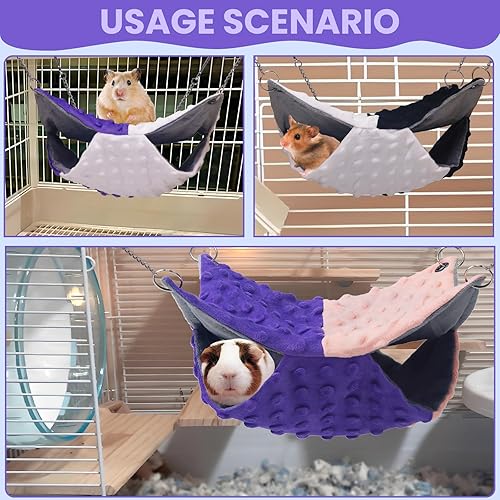 PRODUCT INCLUDES : The package contains 3 pcs of small animal hammocks in different patterns, blue dots, green love heart and white footprint. The rat hammock for cage measures 11×11 inches and is suitable for hamsters, ferrets, gliders, guinea pigs, squirrels, chinchillas, guinea pigs, etc., it is a good choice for picking up a gift for your beloved pets