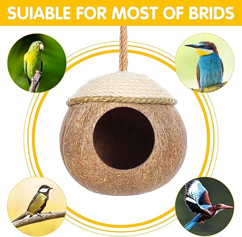 Consistent Supply: each package contains 3 bird coconut houses, allowing pet owners to replace it promptly once it's worn out or place them in different places if they own multiple birds; This constant supply helps in maintaining a clean and healthy environment for your birds