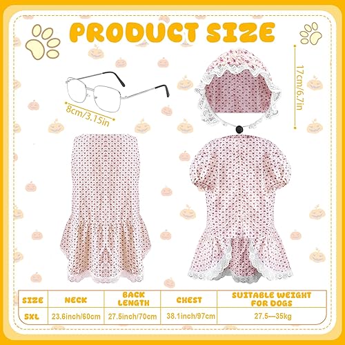 【Grandma Dogs Costume Set】There are 3 piece of old lady dog costumes, you will receive a floral dog grandma dress, a hat and a pair of glasses, the combination will make your dog look like a grandma