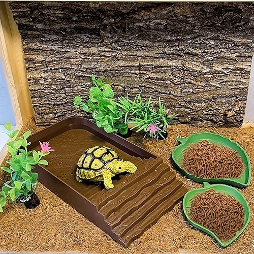 【The best combination】1 tortoise water dish + 2 leaf-shaped reptile water bowls (small + large). The bottom of the bathtub is designed to imitate the stone pattern to simulate the natural environment.