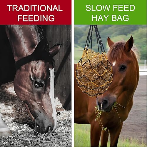 UNIQUE FEEDING STYLE: The hay Hanging Bag can be used not only as a horses feeder, but also as a very unique horses toy. It can help the horse to swallow hay too fast when eating, to develop a good habit of eating hay slowly.