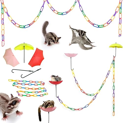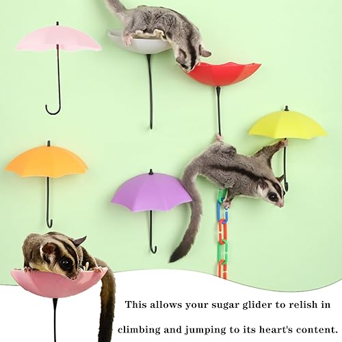 Benefits: Installing and using our sugar glider toys is a breeze. The umbrella platforms adhere securely to walls and can be interconnected with the climbing chain, allowing your sugar glider to indulge in endless climbing and jumping adventures