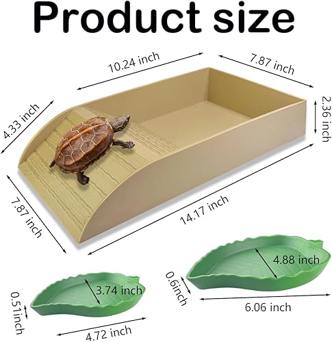 【Suitable Size】: The size of reptile water bowl is about 14" x 7.87" x 2.36", the size of leaf reptile bowl is about 4.72" x 3.74" x 0.51" and 6.06" x 4.88" x 0.6", the right size is enough to fit all kinds of reptiles.